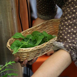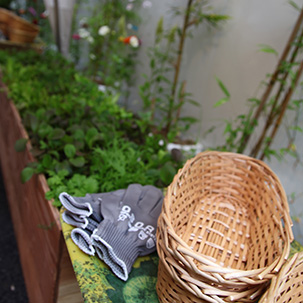 ![]() 新鮮なハーブは約10種類程度ご用意。自分で摘み取った野菜を召し上がっていただきます。 |