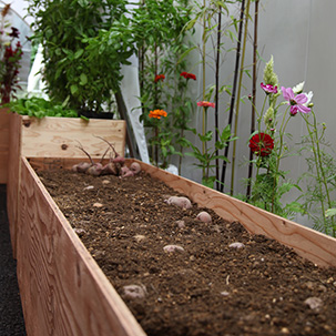 ![]() 芋掘りのプランターもご用意。都会の真ん中で芋掘りができるなんて!皆さん楽しそうに土をいじっていました。 |