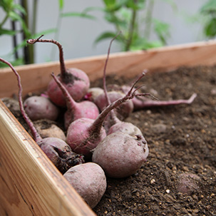 ![]() ビーツもご用意。なかなかスーパーではお見かけしない野菜を皆さん興味深くご覧になっていました。 |