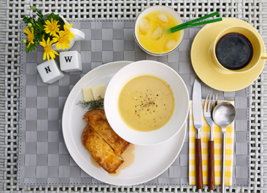 明日からまた始まる一週間に向けて。日曜日のブランチは自分へのエールも込めてカラフルに。ボウルとプレートを重ねて使っても、大好きなスープとフレンチトーストを主役にしてくれるシンプルデザイン。